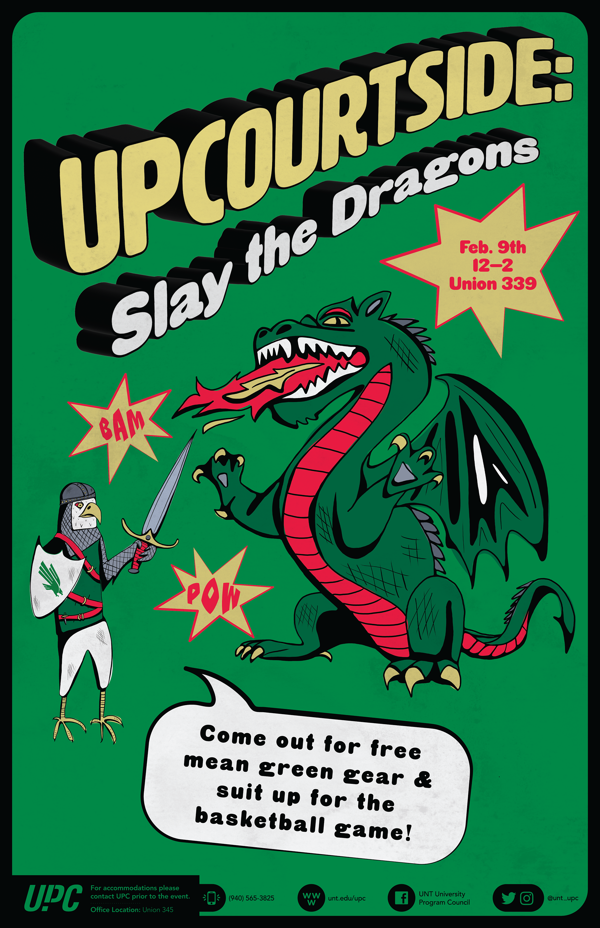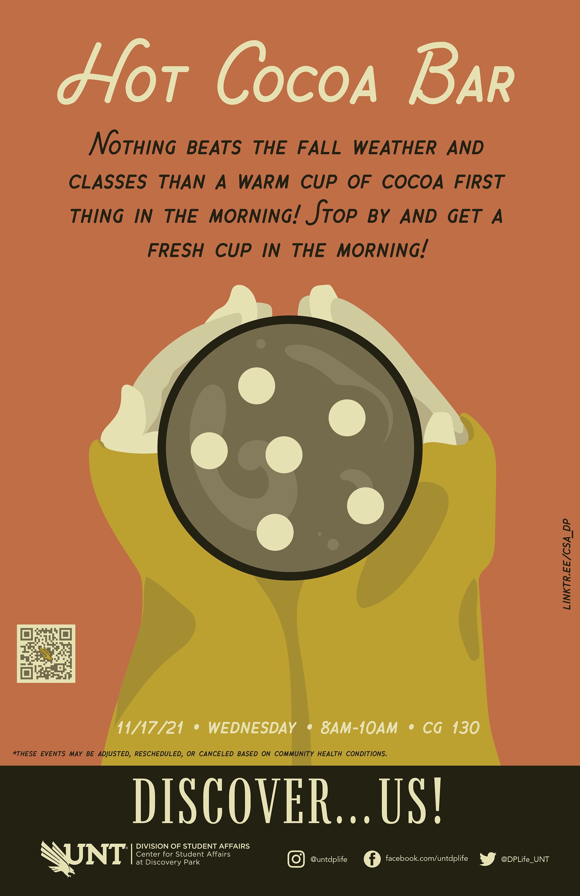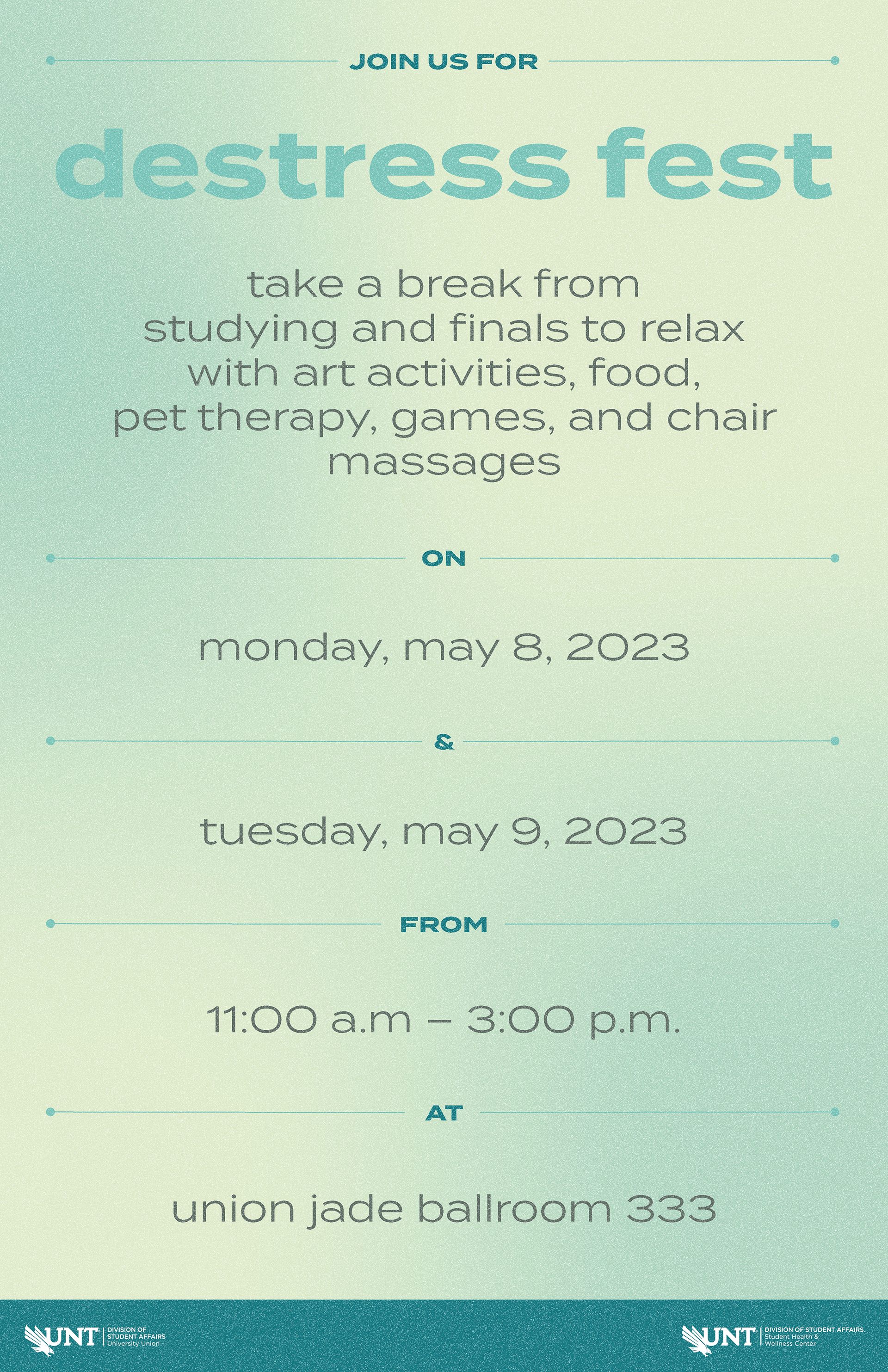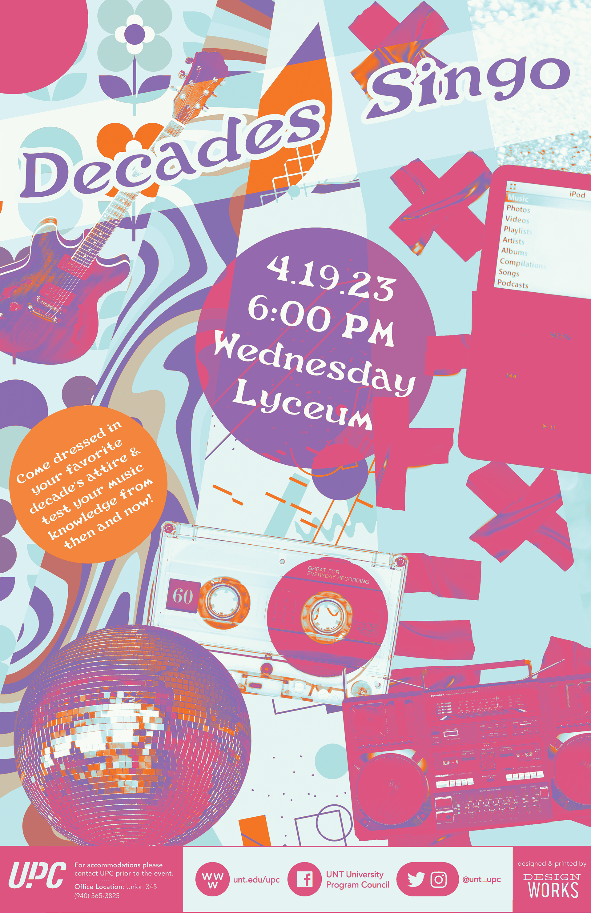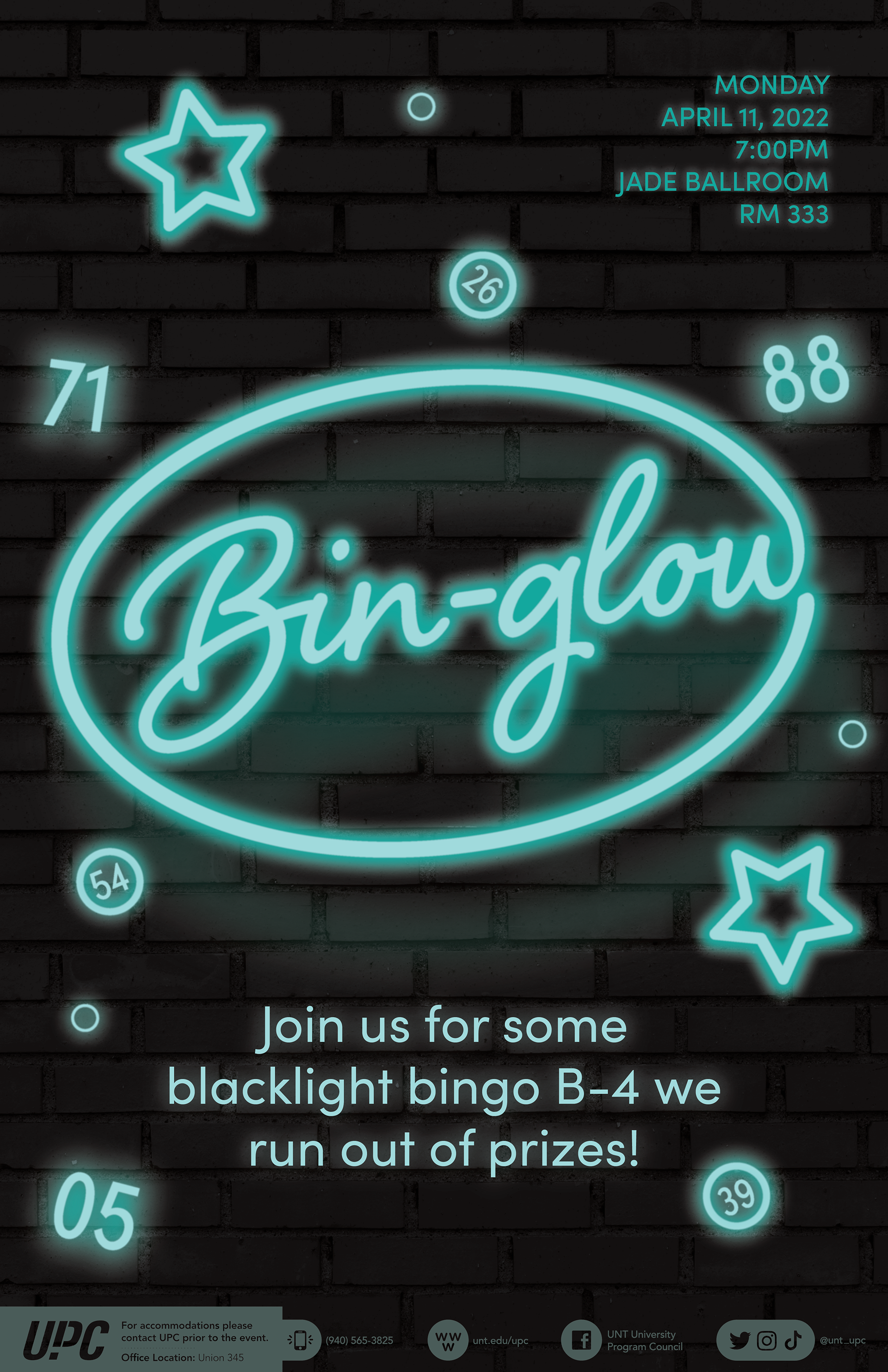 University of North Texas event posters were designed at Design Works for UNT departments and organizations; the poster designs reflect the theme of each event and were displayed as lawn signs/posters/digital ads