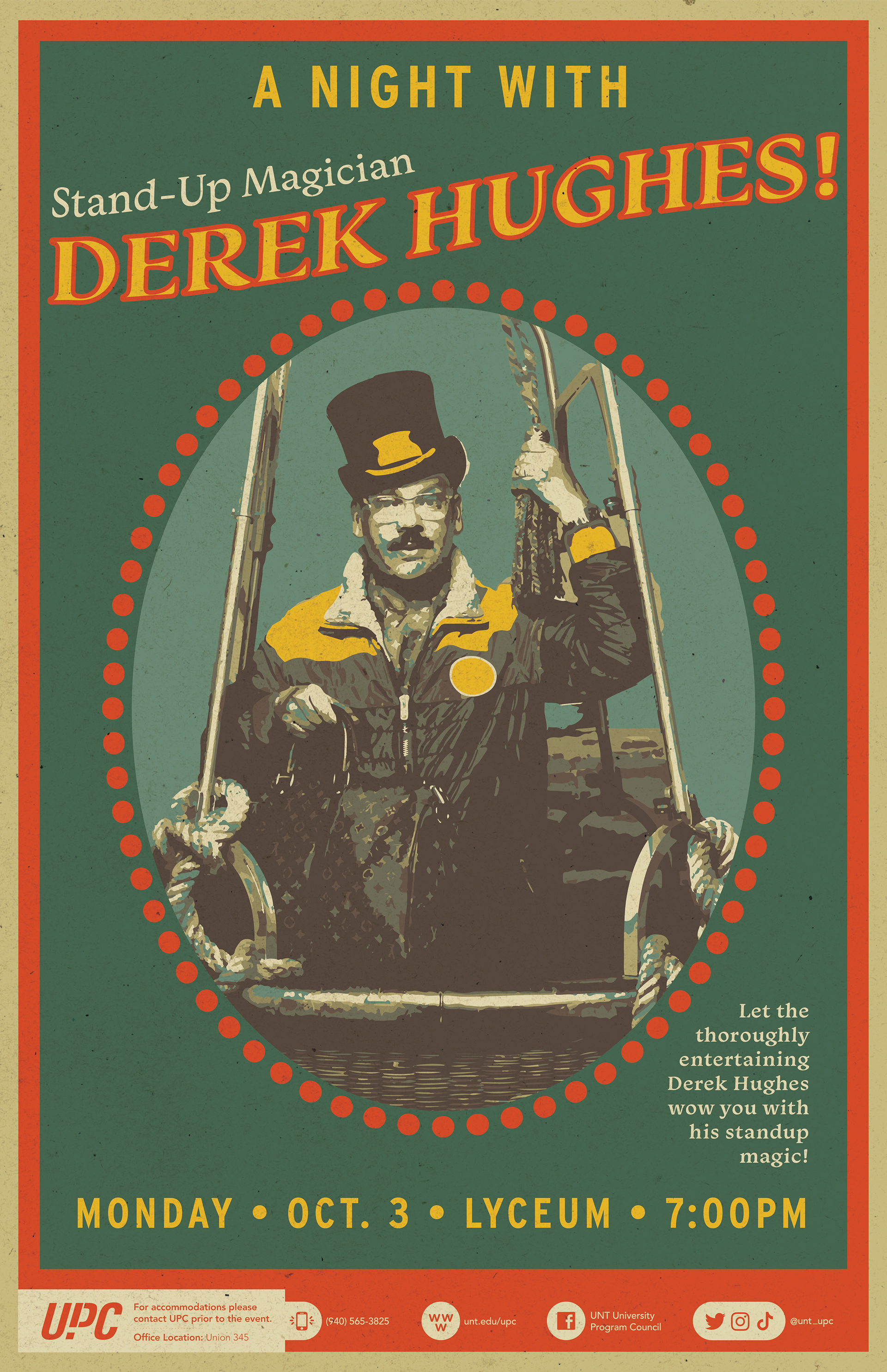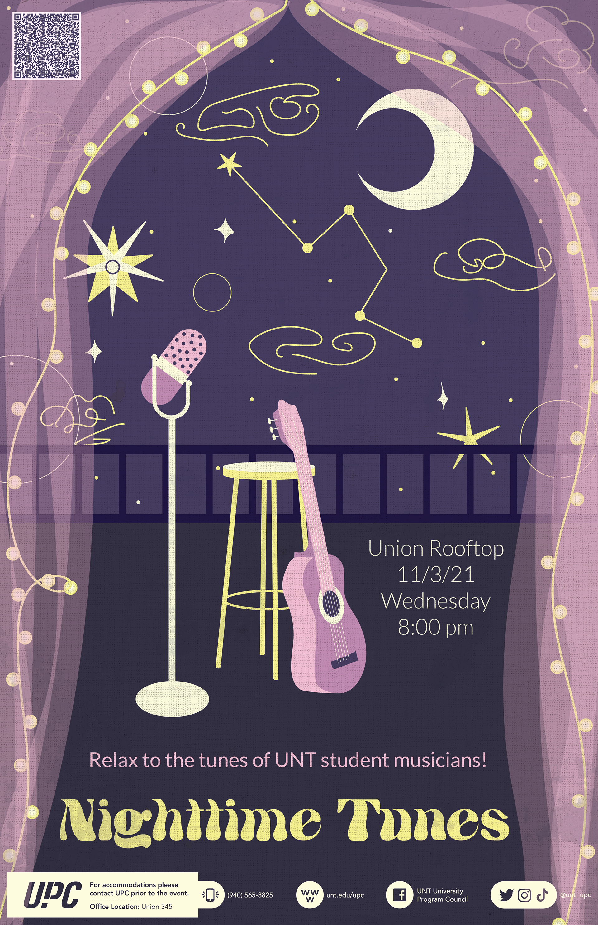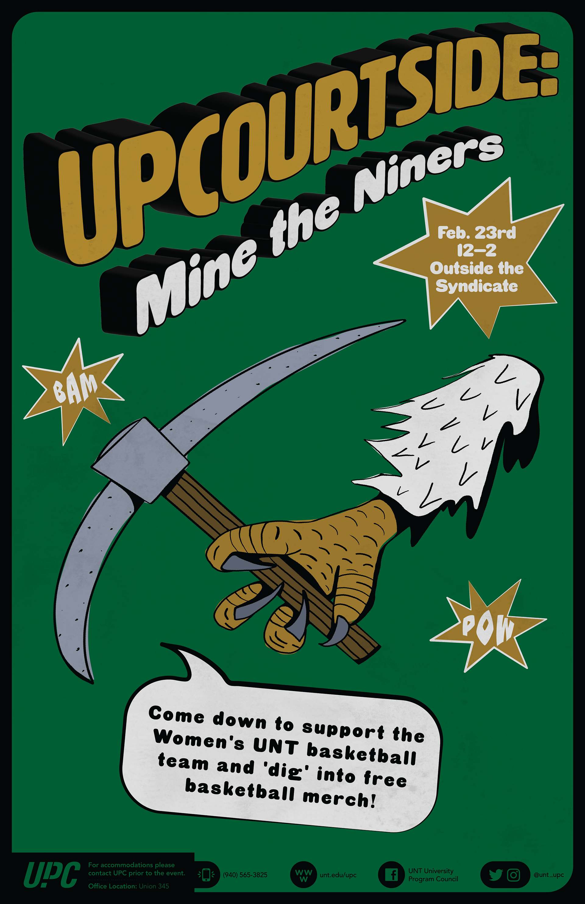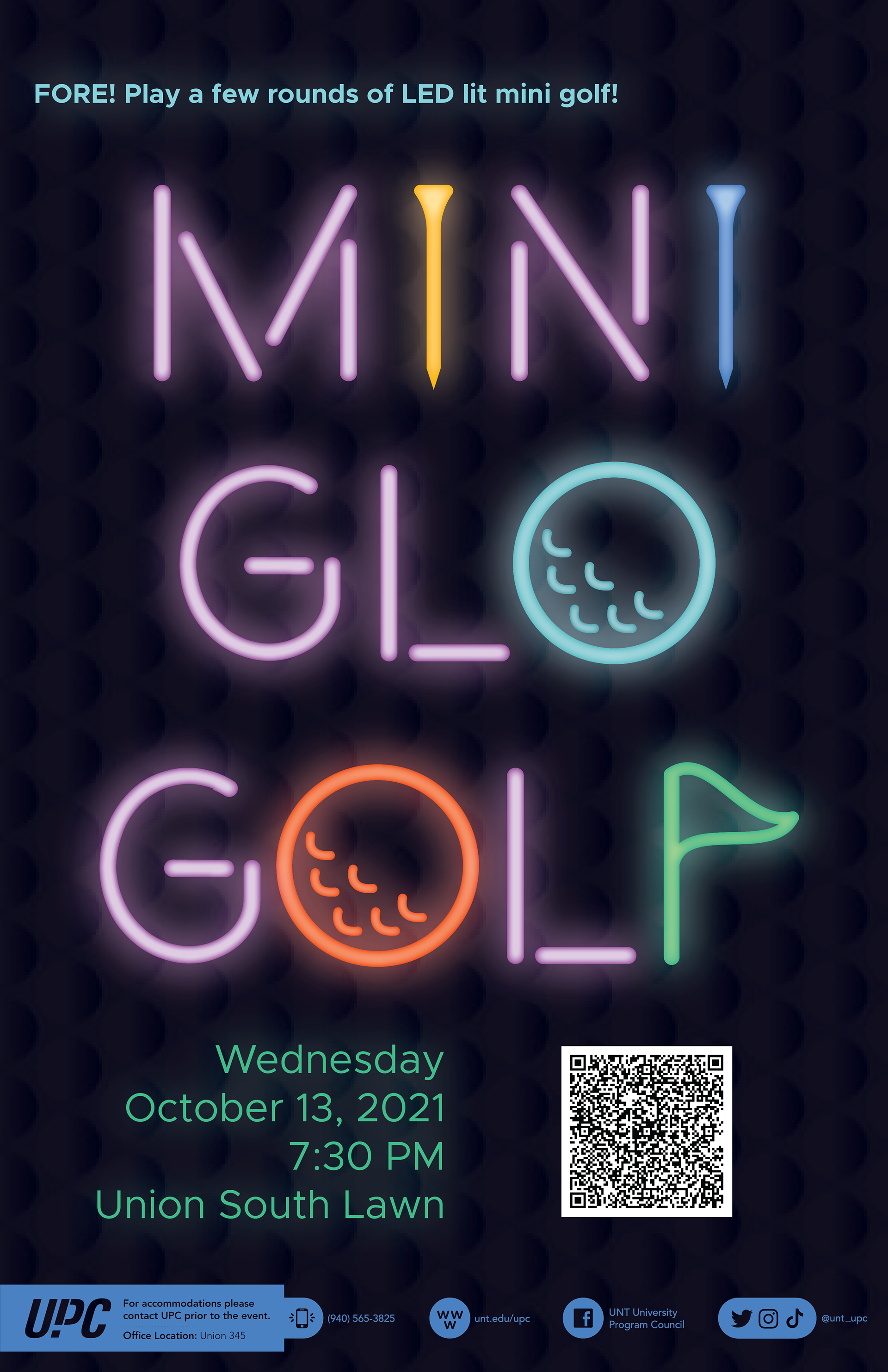 University of North Texas event posters were designed at Design Works for UNT departments and organizations; the poster designs reflect the theme of each event and were displayed as lawn signs/posters/digital ads