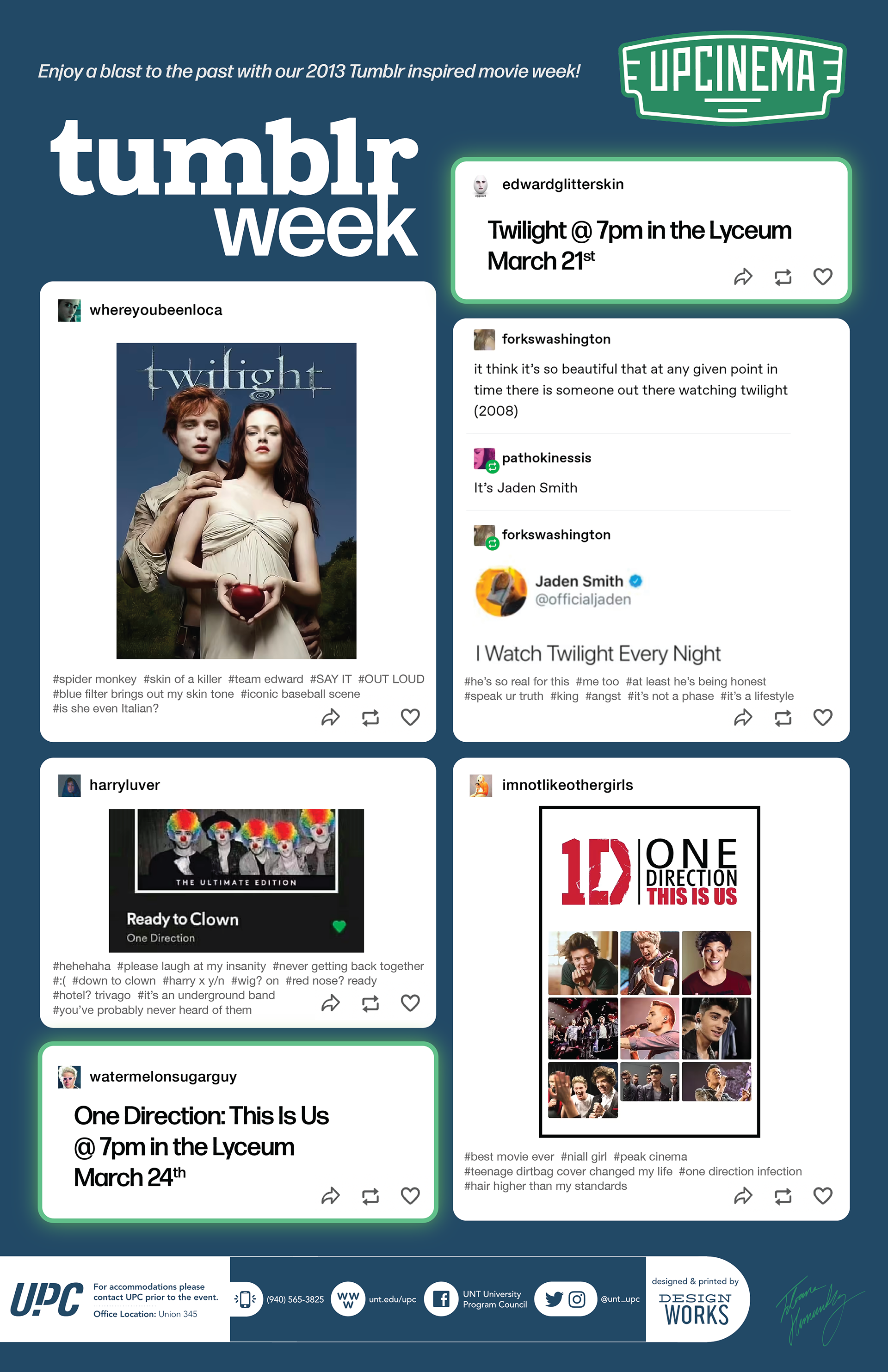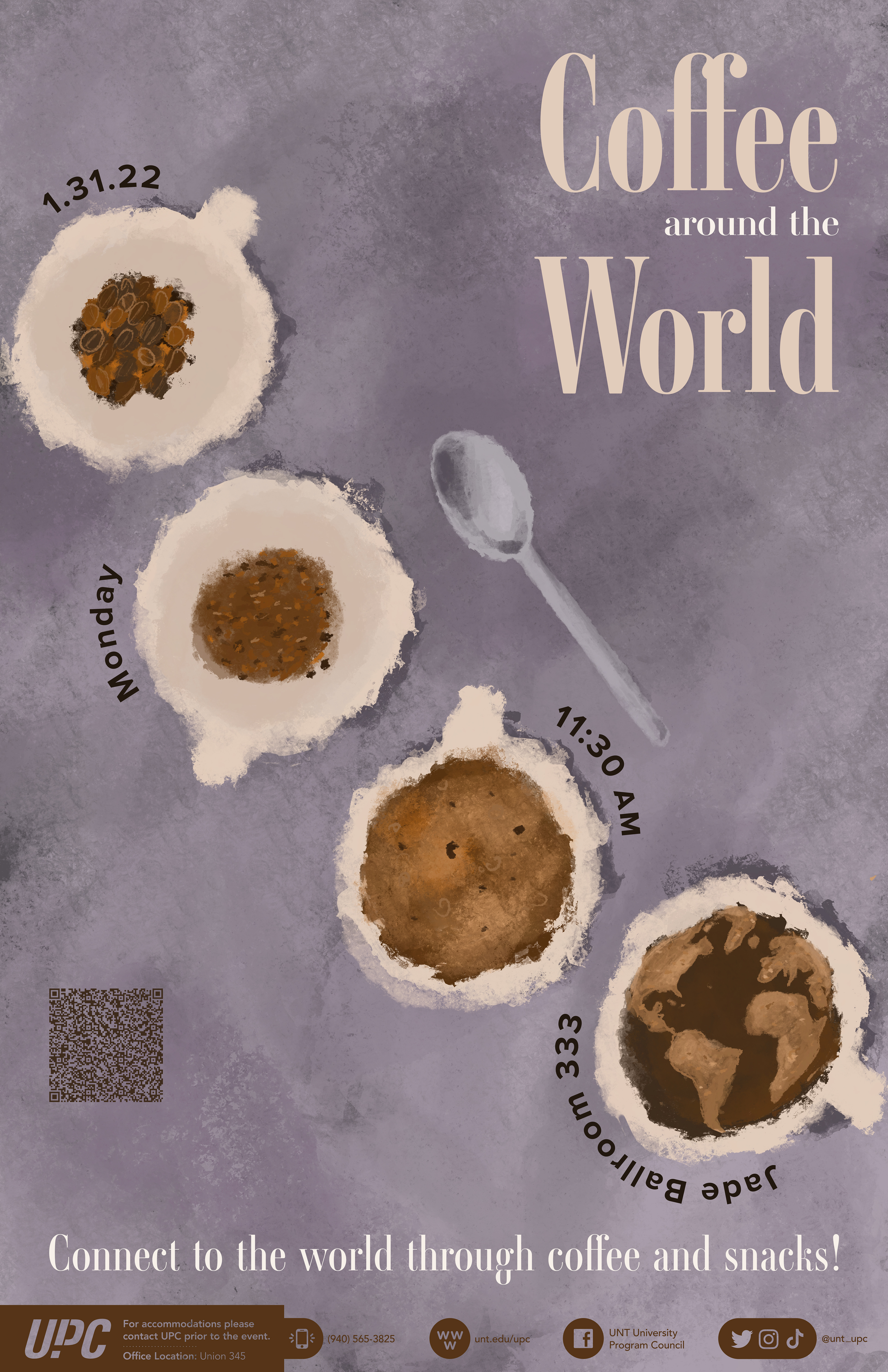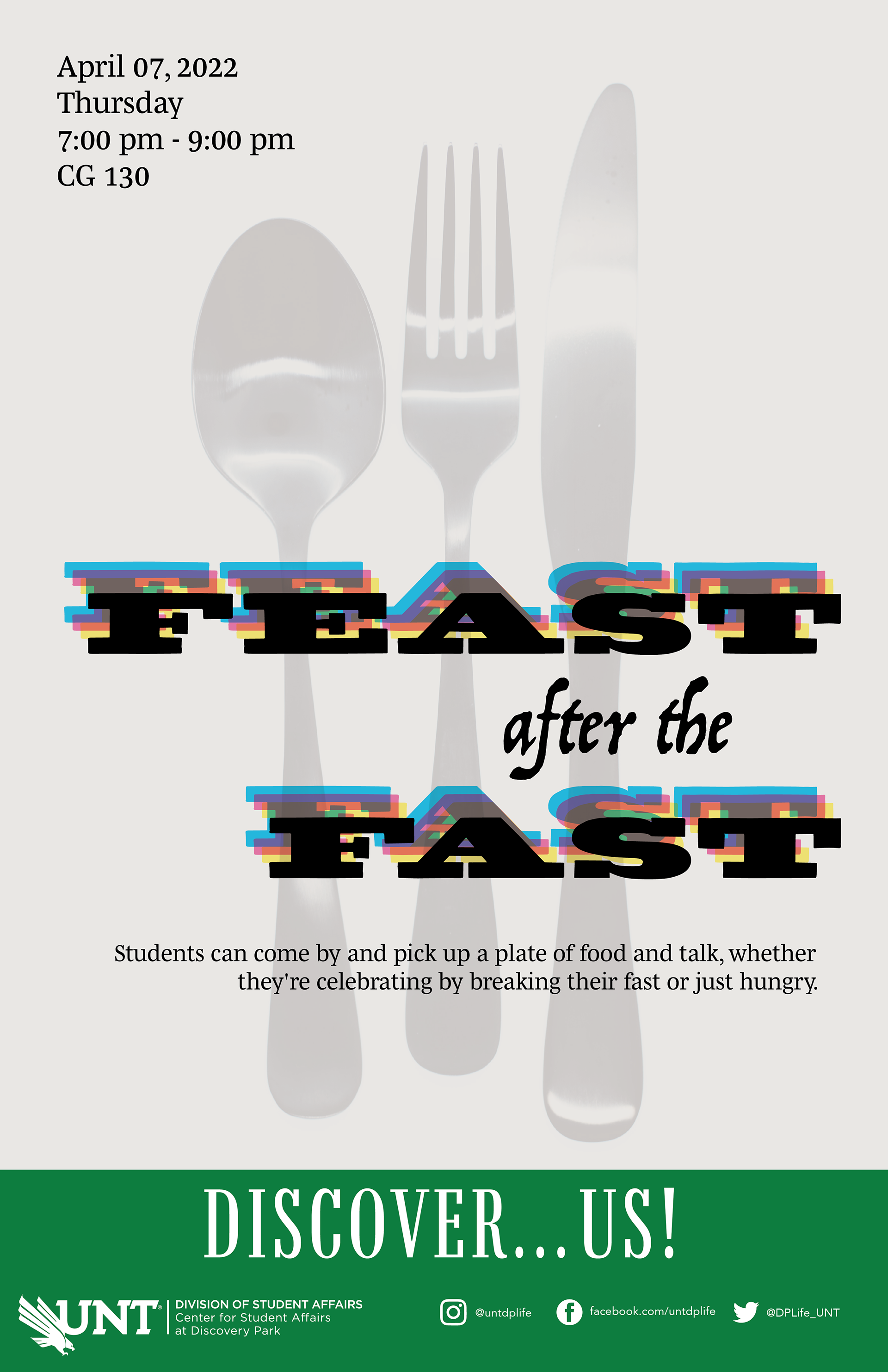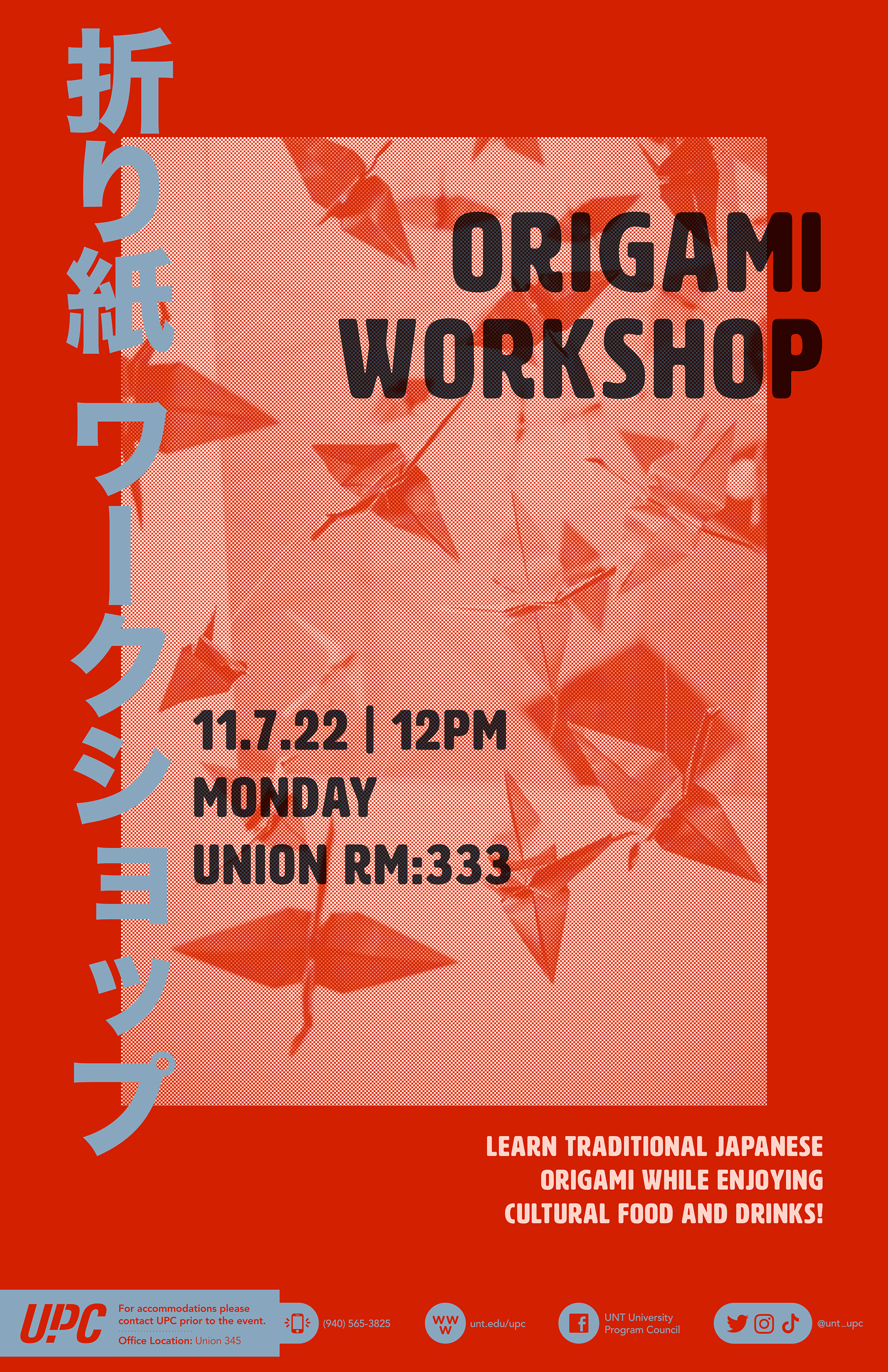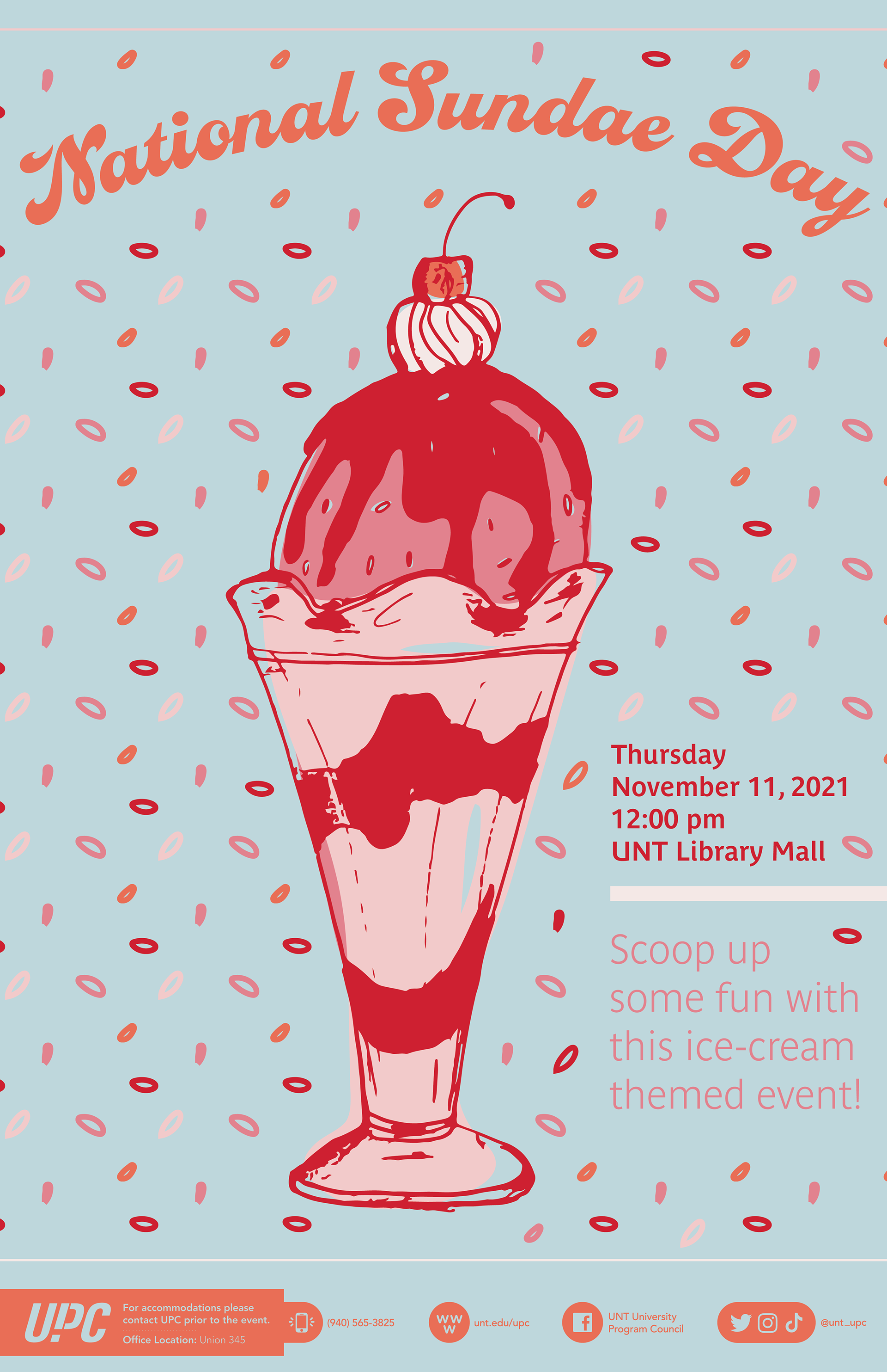 University of North Texas event posters were designed at Design Works for UNT departments and organizations; the poster designs reflect the theme of each event and were displayed as lawn signs/posters/digital ads
